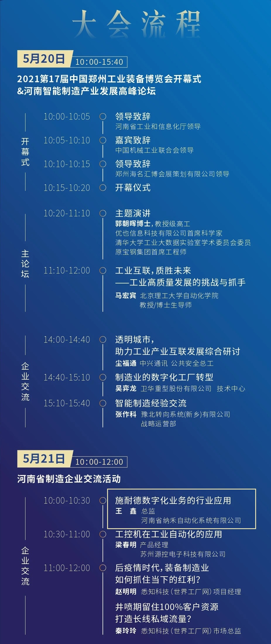 由河南省工業和信息化廳指(zhǐ)導,中國機械工程學會,海名國際會(huì)展(zhǎn)集團主辦,鄭州(zhōu)海名匯博會(huì)展(zhǎn)策劃(huá)有(yǒu)限公司(sī)承辦的2021第17屆中國鄭州工業裝備博(bó)覽會即將於(yú)5.20-23日(4天展(zhǎn)出(chū)時間)在鄭州國(guó)際會展(zhǎn)中心盛大開幕。鄭州工博會作為工業類展會中西地區(qū)的旗艦大展,2021年在(zài)原有基礎(chǔ)上取得了重大突破,展出時間首次突破至4天,總展覽麵積達(dá)7萬㎡,參展品牌突破1500+家,預計將吸引來(lái)自中西部的地區65000+名製造業(yè)專業觀眾到會參觀/采購。
