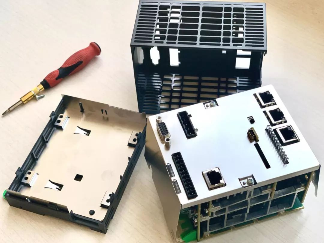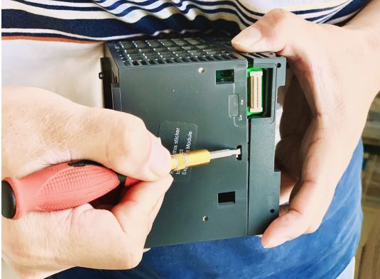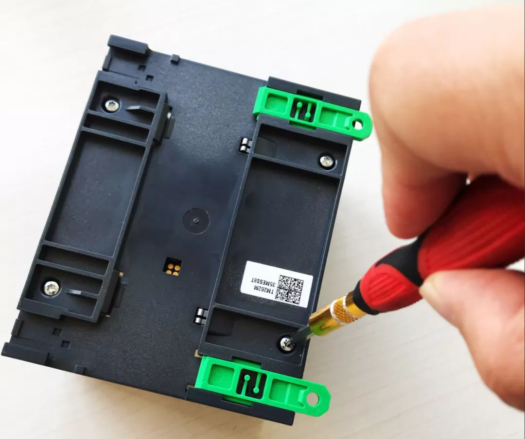 圖片  首先,我們把(bǎ)M262翻過來,可以看到(dào)底部有4個螺釘,不過是內六角的,常見的一(yī)字和十字螺絲刀無法擰開,這也可以避免一些人隨意打開PLC。我們用專門的內六(liù)角(jiǎo)螺絲刀輕鬆擰開了4個螺釘。