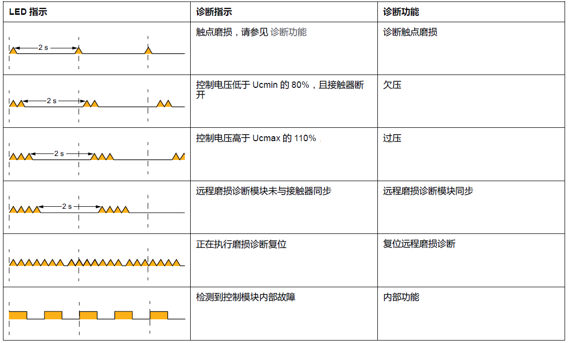 觸點磨(mó)損診斷(在剩餘壽命(mìng)為 15%時給出警告信息):閃爍 1 次