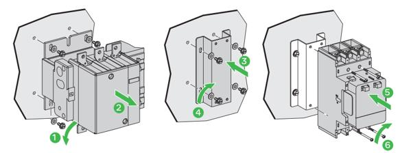 若要與接觸器主電源連接端子對齊,需要選(xuǎn)配安裝底座,安裝步驟如下: